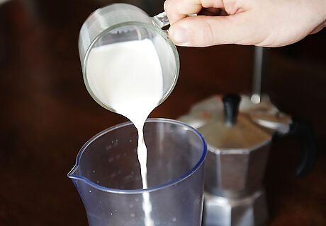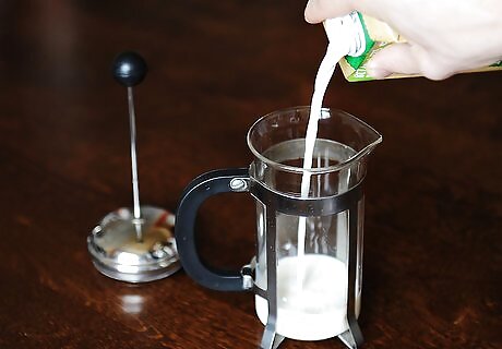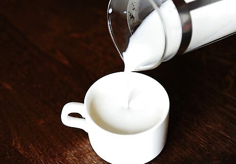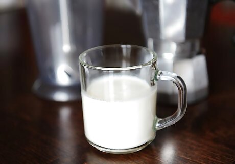 Microwave the milk. Pour ½ cup (118 ml) of skim milk into a microwave-safe mug or bowl. Place the milk in the microwave, and heat on high for 30 seconds to steam it. You can substitute your favorite non-dairy milk for the skim if you prefer.