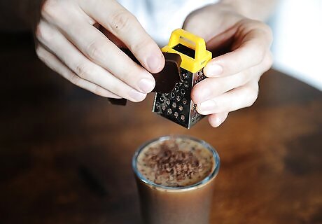 Garnish the latte if desired. You can add whipped cream to the top of your latte or sprinkle it with shaved chocolate. Cocoa powder, ground cinnamon, or ground nutmeg are also ideal toppings. Keep in mind that any toppings that you add to the latte will make it less “skinny.” If you want to keep the calories and fat down in your beverage, it’s best to keep the toppings simple.
