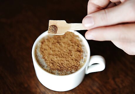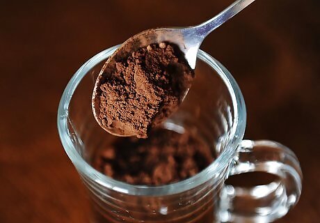 Combine the hot espresso and hot chocolate powder. Add approximately 1 cup (237 ml) of hot espresso to a large mug with 2 tablespoons (16 g) of sugar-free hot chocolate mix. Mix the two together until they’re well blended. You can substitute chocolate syrup for the hot chocolate mix, but a powdered mix usually works best.