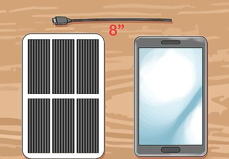 Attach the solar panel. Glue onto the back of the case. The phone camera might not be usable and the phone can't be used easily when charging. To fix this glue the hinge onto the backs of the solar panel and onto the back of the phone case. When the hinge is open the solar panel should be next to the phone.