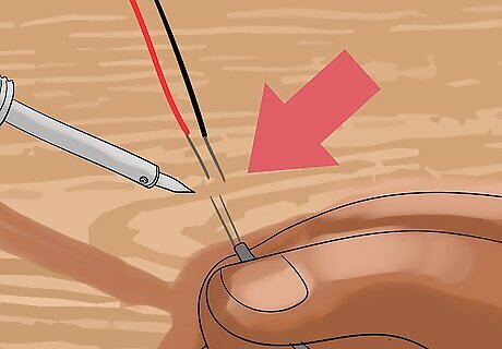 Using solder and a soldering iron, solder the wires on the solar panel to the corresponding wires on the charging cable. Use the soldering iron the heat up the wires. then melt the solder onto the hot wires.