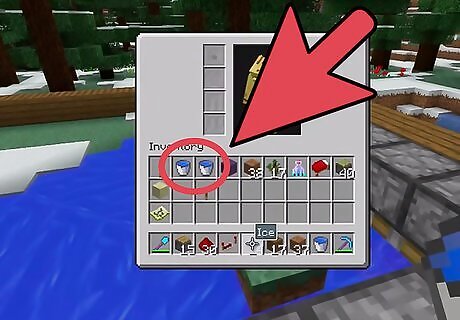 Identify the items you need. At the very least, you need 1 Bucket and a tool with the enchantment Silk Touch. With the Bucket, you can gather the water needed to provide a steady stream of water to freeze, but you can’t harvest the resulting Ice without a tool (Shovel, Axe, or Pickaxe) with Silk Touch. This is because some blocks break too easily, and yield nothing when interacted with, so Silk Touch bypasses the sensitivity, so to speak, of the block and lets you obtain the block itself.