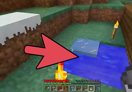 Build a farm the simple way. The extremely simple way is to find a frozen river or patch of water, place a block on top of the ice (PC: press the number corresponding to your item in your hotbar, or use the mouse scroll button to select the item, then right-clicking on the area; Xbox: select items by pressing the Right and Left Bumper buttons, and place it by pressing the left trigger button), and then place a torch in the middle of it. This method is the simplest, and relies on the Torch’s ability to melt the water to provide a steady source of water. You can also place a torch on the shore and harvest the Ice forming at the fringes of the resulting path of water. This is a little ineffective compared to the next two methods since you run the risk of running out of water, or creating an un harvestable flowing patch of water if you’re not too careful.