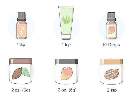 Gather your ingredients. Mango butter is a rich, creamy natural substances that nourishes the skin and has an amazing tropical scent. You can find it at natural food markets or online. You'll need the following ingredients to make about five ounces of body butter: 2 ounces (6 grams) cocoa butter 2 ounces (6 grams) mango butter 2 teaspoons shea butter 1 teaspoon wheat germ oil 1 teaspoon aloe vera gel 10 drops mango essential oil