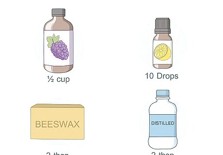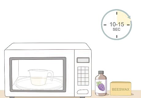 Heat the oil and beeswax. Place 1/2 cup grapeseed oil and 2 tablespoons (29.6 ml) beeswax in a canning jar or a heatproof glass measuring cup. Place the mixture in the microwave and heat for 10 to 15 seconds. Stir, then repeat until the oil and beeswax are melted. Be sure to microwave the mixture in short increments to prevent it from getting too hot and burning. Do not try to cook the mixture in a plastic container, since the plastic could leach into the mixture.
