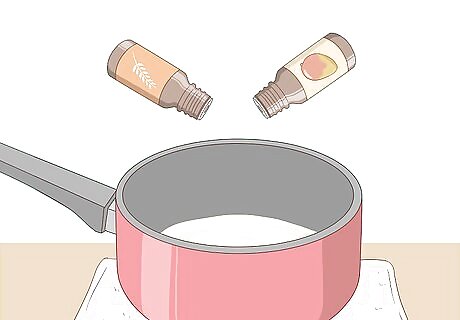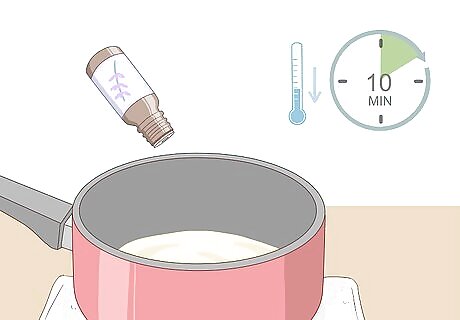 Cool and add the essential oils. Allow the mixture to cool for 10 minutes, then stir in 15 to 20 drops of the essential oil of your choice.