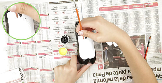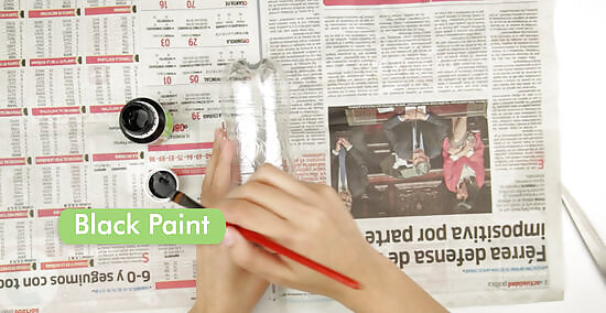 Paint the entire capsule black, then let it dry. Take the capsule outside or into a well-ventilated area. Set it down on a sheet of newspaper, then coat it with black spray paint. Let the paint dry for 15 to 20 minutes, then turn the capsule over. Spray paint the bottom and let it dry completely. Hold the can 8 to 10 inches (20 to 25 cm) from the capsule, and spray using a side-to-side motion. If the paint is too thin, let it dry completely, then apply another coat of paint. If you don't have spray paint, paint the capsule using black acrylic craft paint and a paintbrush.