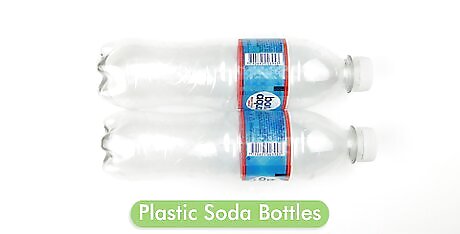 Find 2 plastic soda bottles. The large, 2-liter (67.2-oz) bottles will work the best for this, but you can use smaller soda bottles too. Look for the kind that have the 4 bumps on the bottom. These bumps will make the feet and the hat. The color of the bottles does not matter. You will be painting it.