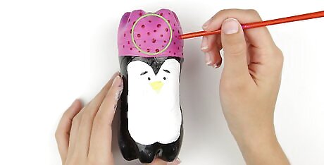 Paint the top half of the bottle to turn it into a hat. The 4 bumps on top of your penguin's head can easily turn into a hat. Paint a line around the penguin's head, just above the eyes, then fill in everything above that line. Use whatever color you want. If you have a molded line just below the bumps, you can use that as a guide instead.