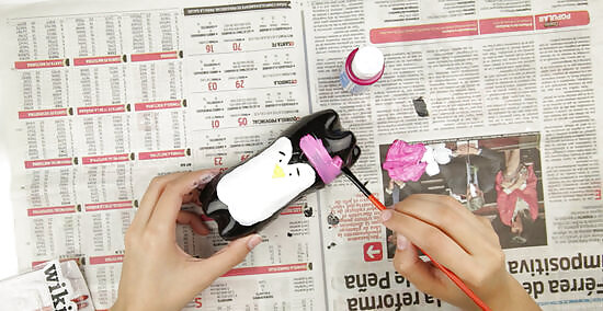 Give your penguin character with lashes, eyebrows, and/or blush. You don't have to do any of these, but they can really give your penguin personality. Use a very thin brush for the lashes and/or eyebrows, or a paint pen. Use a larger pointed brush to apply pink paint for the blush. If you want to give your penguin visible yellow feet, paint the 2 bumps in the front (under the white bellow) with yellow acrylic craft paint.
