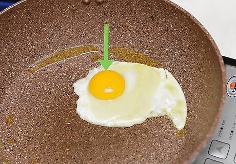 Fry an egg in a separate pan. Add a teaspoon (4.92 mL) of olive oil or melted butter to a skillet or pan. Crack the egg over the pan and cook it. Keep it on the heat for 2-5 minutes, or until it’s cooked to your preferences. If you like a runnier egg, keep it on the heat for less time. Gently poke the yolk to determine if it’s cooked enough. Make sure that all egg whites have cooked before removing your egg from the heat.