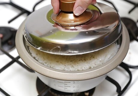 Cook your rice. Cook your rice in a steamer, pot, or rice maker as you normally would. To cook rice on the stovetop, boil 1.5 cups (354.88 ml) of water then add your 3/4 cups (140 g) of uncooked before reducing the heat to low and keeping it covered on the burner for 20-30 minutes. As an alternative to freshly made rice, you can also use leftover rice. Once your rice is cooked, set it aside for later. One cup (200 g) of uncooked rice will make 3 cups (600 g) of cooked rice.