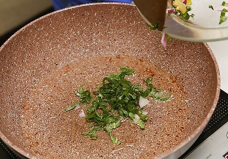 Brown your scallions in the bacon fat. Heat the pan over medium-high heat for 3-4 minutes until the bacon fat is hot. Add your scallions to the fat and allow them to simmer for 2-3 minutes, then reduce your stovetop to medium heat. Your scallions should sizzle when you add them to the pan.