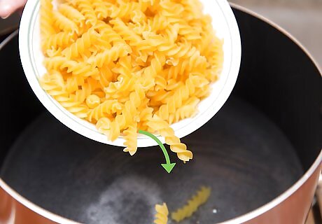 Add 1 pound (450 grams) of pasta and 1 tablespoon of salt. You can use any type you want, but textured shaped (such as corkscrews) will hold the sauce better. You might want to add in 1 to 2 teaspoons of some sort of cooking oil. This will help keep the pasta from sticking.
