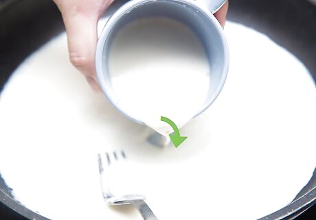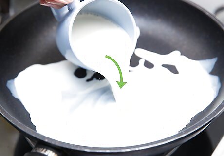Heat 1 cup (240 milliliters) of milk in a saucepan over medium heat. You will be adding the rest of the milk later.