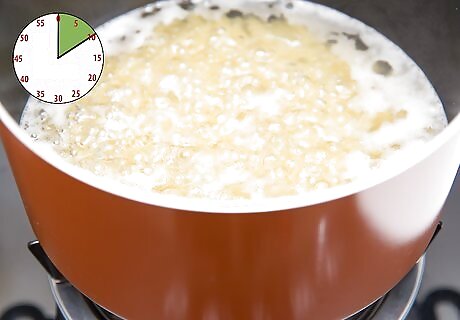 Place the pot on the stove and bring it to a boil over high heat. You can save some time by starting to prepare your cheesy sauce. If you cook the sauce and the pasta together at the same time, your meal will be ready sooner.