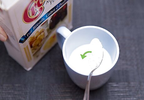 Mix ½ cup (120 milliliters) of milk with 2 tablespoons of flour. In a separate cup, whisk together the remaining milk with the flour. Keep whisking until there are no clumps left.