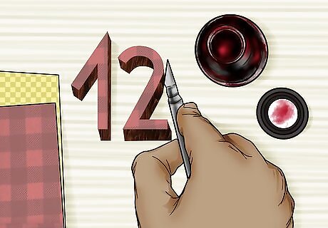 Cover the numbers. Use the glue to attach each of the wooden numbers to a portion of the scrapbook paper. Use the Xacto knife to carefully cut around the numbers to remove the excess paper. Set the numbers aside for a moment and allow the glue to dry. Finish off the numbers by dipping the edges in the ink. To seal the numbers further, paint on a protective coat of glaze. For a more sophisticated look, forgo the scrapbook paper and instead spray the numbers with metallic silver spray paint.
