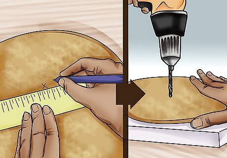 Prepare the clock hands. Use a ruler to determine the center of the cork trivet. Mark this point with an X and use a power drill to drill a hole through the marking. The hole should be large enough that the clock part can fit through. Clock hands come as part of a clock mechanism kit, which can be purchased online or in stores for around $5. Clean up the cork board shavings and wipe down the area. Spray the clock hands from the clock making kit with the white spray paint. Let them dry before proceeding.