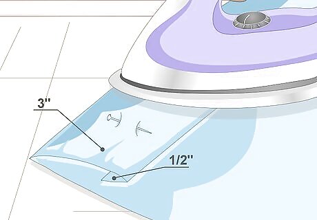 Fold the bottom hem of the curtain twice. Fold the bottom edge up by ½ inch (1.27 centimeters) and press it flat. Fold it up by 3 inches (7.62 centimeters) and press it flat again.