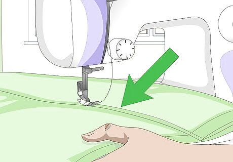 Topstitch the bottom hem down. Sew as close to the inside folded edge as you can, and remove the sewing pins as you go. Use a thread color that matches your fabric, and backstitch a few times at the start and end of your sewing.