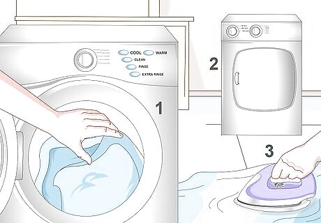 Wash, dry, iron, and cut your fabric. This is an important step. Washing and drying your fabric will help remove any starches and shrinking, while ironing your fabric will get rid of wrinkles. Ironing helps smooth out the fabric so it's simpler to sew.