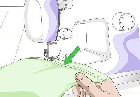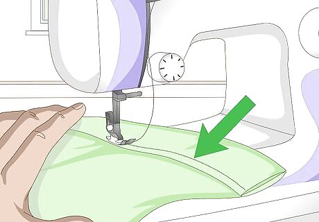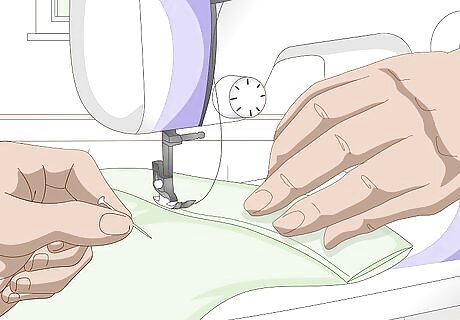 Topstitch the hems down. Sew as close as you can to the folded, inside edge of the hem. Use a thread color that matches your fabric, and remove the pins as you go. If you used iron-on hem tape, you can skip this step.