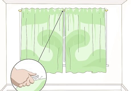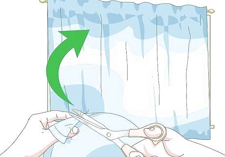 Snip off any loose threads, then hang your curtain. Purchase some curtain rings, and clip them to the top hem of your curtain; be sure to space them evenly. Slide the curtain rings onto your curtain rod, then hang it up on your wall.