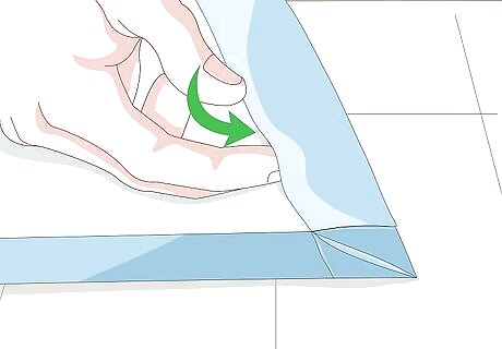 Topstitch the hems down, as close to the inside folded edge as you can. Backstitch a few times at the start and end of your sewing to prevent the thread from unraveling. Be sure to use a thread color that matches your bed sheet, and the remove the sewing pins as you go. If you don't know how to sew, you can use iron-on hem tape. Tuck the hem tape, paper-side-up under the hem, and iron it down. Pull the paper backing off, then iron the hem down on top of it.