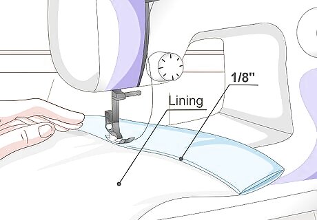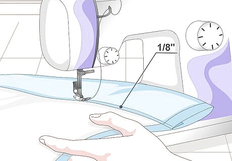 Topstitch or hemstitch the bottom hem. You can use your sewing machine to topstitch the hem down, ⅛ inch (0.32 centimeters) away from the inner, folded edge. You can also stitch it down by hand, using either a hemstitch or a blind hemstitch. It all depends on whether or not you want the stitching to be visible.