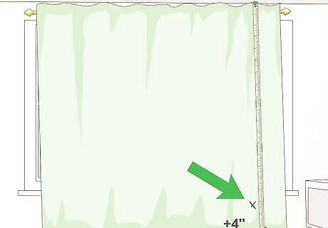 Measure the curtain, and make a mark where you need to cut it. Hang your curtain first, then measure where you want it to end. Add 4 inches (10.16 centimeters), and make a mark and both sides.