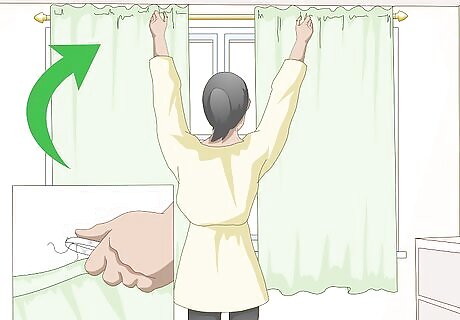 Snip off any loose threads, then hang your curtains. If you left a casing at top, you can simply slide it onto a curtain rod. If you didn't, you will have to clip some curtain rings to the top hem, then slide them onto a curtain rod. Once you have your curtain secure, hang the rod up.