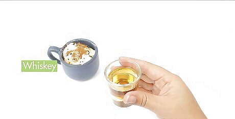 Turn coffee into Irish coffee. In a large mug, combine a cup of freshly brewed coffee, 2 tablespoons (30 ml) of whiskey, and a ½ tablespoon (7 g) of sugar. Stir to combine the ingredients and dissolve the sugar. Pour a ⅓ cup (78 ml) of heavy cream into a chilled mixing bowl. Add a ½ tablespoon (7 g) of sugar and beat the cream until soft peaks form. Pour the cream into the coffee and serve. You can also sprinkle the cream with a dusting of ginger or cinnamon before serving.