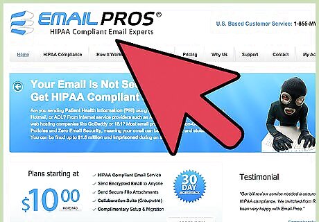 Research HIPAA Compliant Email Service Providers. The technical requirements are so complicated that, unless you are an expert in information systems, you will need to hire a HIPAA Compliant Email Service Provider to provide your email system. Free, web-based email services like Yahoo and Gmail are not sufficient email systems. In fact, they provide no security. To find a compliant service provider, you can do the following: Talk with your health care attorney. He or she should be familiar with HIPAA Compliant Email Service Providers. Search the Internet. Several companies advertise their services on the Internet. Search “hipaa compliant email.”
