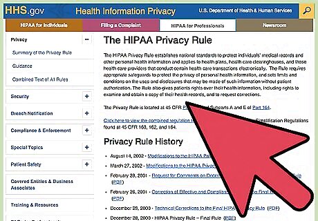 Meet with a lawyer. An experienced health care attorney should be able to help you understand the legal requirements and also find ways for you to make your email system compliant. You will want to meet with a lawyer who specializes in health care law especially. To find a health care attorney, visit your state’s bar association. It should have links to referral programs (or host a referral program itself). Once at the website, you will be provided with a phone number to call or a directory that you can search.