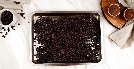 Bake the espresso beans for about 1 hour to give them a toasted flavor. Set a timer and let the oven do its work. There’s no need to check on the beans or flip them during the 1-hour cook time. If you skip the baking step, the beans could create a powder that is a little too bitter for your baking needs.