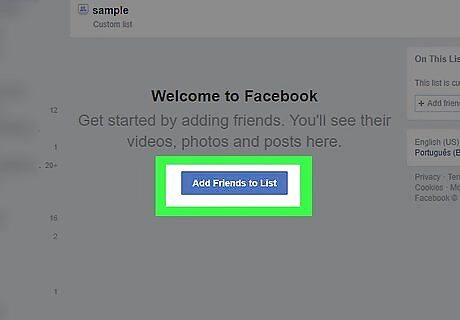 Click Add Friends to List. This blue button will be in the middle of the Friend List page. If you want to add friends to a different list, click Friend Lists again, then click the list you want to edit.