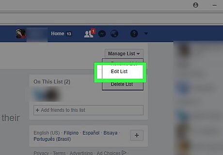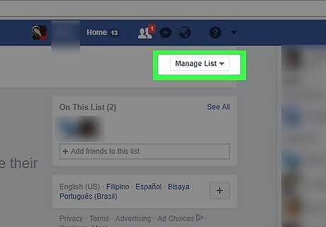 Click Manage List ▼. It's in the upper-right corner of the page. A drop-down menu will appear.