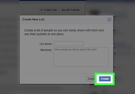 Click Create. This will create your friend list and open it. You can add friends to this list by clicking the "Members" text box, typing in a name, and clicking the related friend in the drop-down menu that appears.