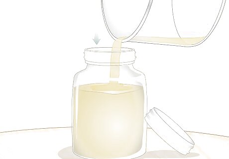 Place the mixture in a glass jar with an airtight lid for storage. Use a spoon or spatula to scoop the lotion out of the saucepan or double boiler and into 1 or more glass jars. If the lotion is still hot from the stove, wait for it to cool off completely before attaching a lid. Store the jars out of direct sunlight. These lotions can last up to 2 years if stored properly.