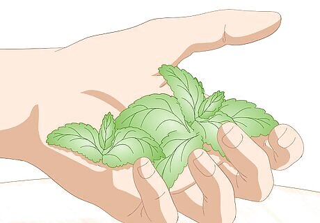 Try using lemon balm leaves to get rid of pesky cold sores. Crush the leaves to obtain a useful ingredient for salves and lotions. While these leaves are most well-known for being added to hot drinks, you can use them topically to take care of your cold sores. If you want a quicker solution, use medical tape to press a leaf to the cold sore for several hours. Check your local farmer’s market to find some lemon balm leaves. Lemon balm leaves are not a proven cure-all for cold sores, but they can be a good starting point if you don’t want to use drugstore medications.