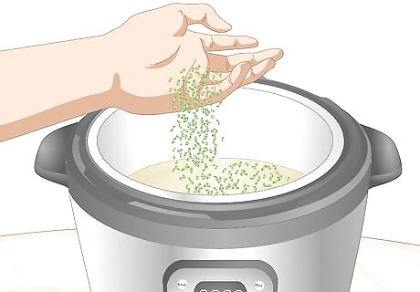 Mix your oil and chopped herbs together in a slow cooker. Prepare your fresh herbs by finely chopping them into small pieces. Place 2 cups (gram measurement differs per plant) of your chosen herb(s) into the slow cooker. Next, pour 2 cups (470 mL) of your carrier oil on top of the herbs until they’re completely coated in oil. Use the tip of a wooden spoon to stir the mixture and remove any air pockets. You can use a food processor if you don’t want to chop your herbs. Feel free to use dried herbs, as well! Add an extra 0.5 to 1 cup (120 to 240 mL) of carrier oil, if you want to have more oil on hand.