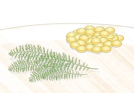 Use yarrow to make an antiseptic lotion or salve. Create a product out of yarrow to serve as an all-natural astringent for your medical supplies. If you find yourself with any cuts or scrapes, apply some yarrow-infused ointment to the wound to partially ease the pain. When chewed on, yarrow leaves may get rid of tooth pain.