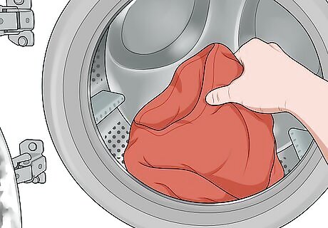 Wash the clothes according to your machine's instructions. Once the cycle is done, take the clothes out and inspect them for stains. If you need to, reapply a stain-removable treatment, and wash the clothes again. If you put stained clothes into a dryer, the heat will set the stain.