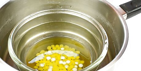 Microwave the mixture for 10 to 30 seconds. Put the bowl into the microwave and set the timer for 10 seconds to start. Check it after that time to see if the ingredients have begun to melt. If not, put it back for an additional 10 to 20 seconds. Be careful when using the microwave. The bowl may be hot to the touch once it’s done.Tip: If you don’t have a microwave, use a double boiler on the stove to melt your ingredients.