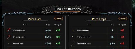 Look for items that have a good price range. A price range of at least 20% - 50% would be great. For example, item A lowest price is at 50 gp, and highest price is 75 gp, that means this item would have a price range of at least 50%.