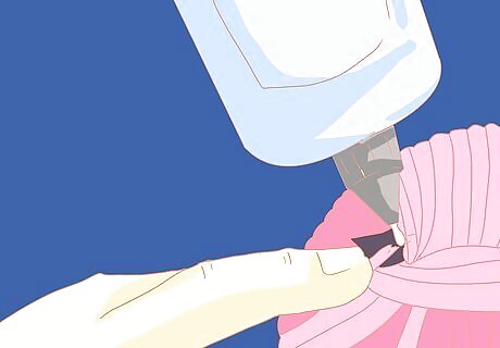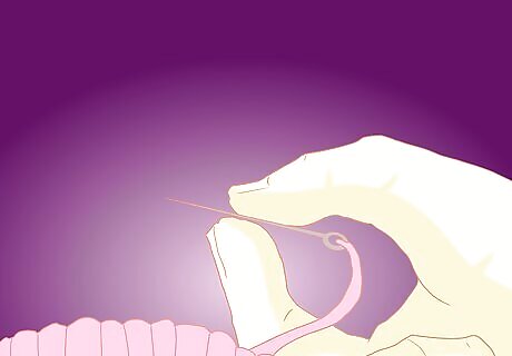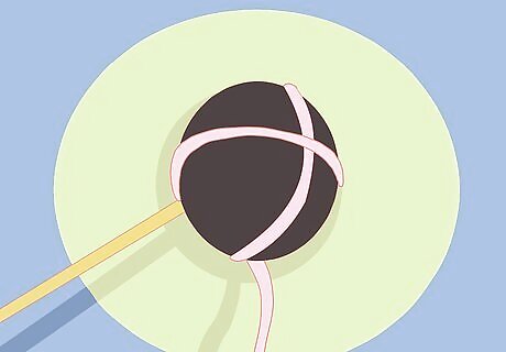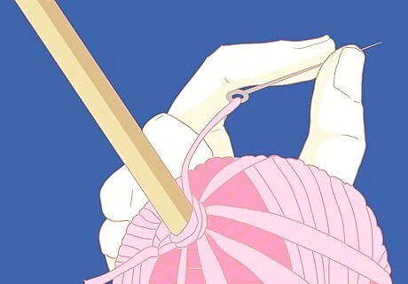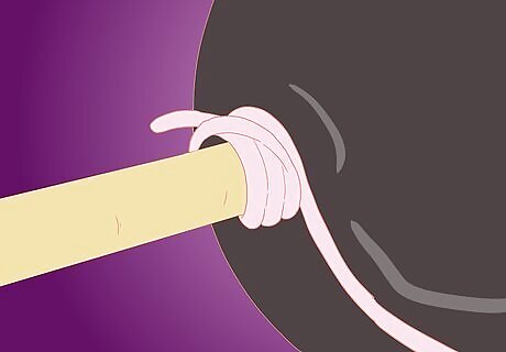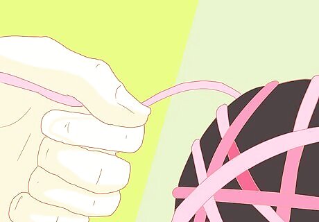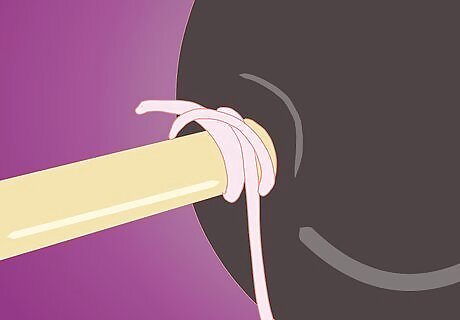 Tie a clove hitch around the bottom of the rubber core. Leave about 3 inches of extra yarn for stitching the bottom.
