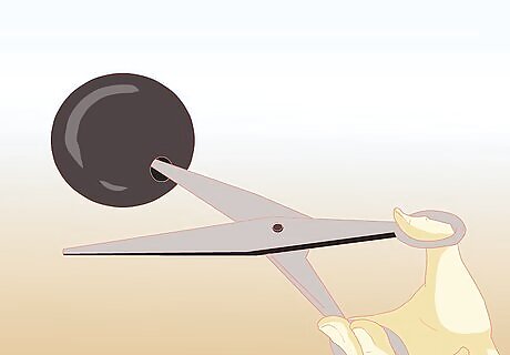 Stick one end of the scissors into the hole in the ball knob, twisting it to shave the inside until to hole is large enough for the dowel to fit into it snugly.