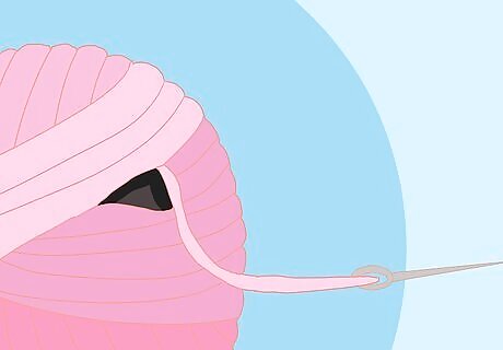 When done with the number of desired wraps, there should be a little hole at the top. Leave about 3 inches of slack and cut the yarn. Thread the end of the yarn into the needle.