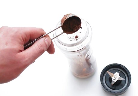 Blend the milk, hazelnut-cocoa spread, and espresso powder. Measure out 1 cup (240 ml) of milk, 1/2 cup (148 g) of hazelnut-cocoa spread and 4 teaspoons of instant espresso powder. Place all of the ingredients in a blender and put the lid on it. Blend the ingredients for about 30 seconds, so they're smooth. You can use any type of milk you like. For example, try whole milk, almond milk, or soy milk.